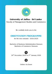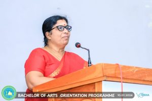 The Centre for Open and Distance Learning (CODL), University of Jaffna, conducted an Orientation Programme for the fourth batch of Bachelor of Arts new entrants on 10 January 2026 at the Faculty of Commerce and Management Studies. As part of the programme, Mrs. S. Arulantham, Head of the Department of History, delivered an introduction to the History subject. The programme was designed to familiarize new students with the academic environment and the institutional framework of the Faculty.